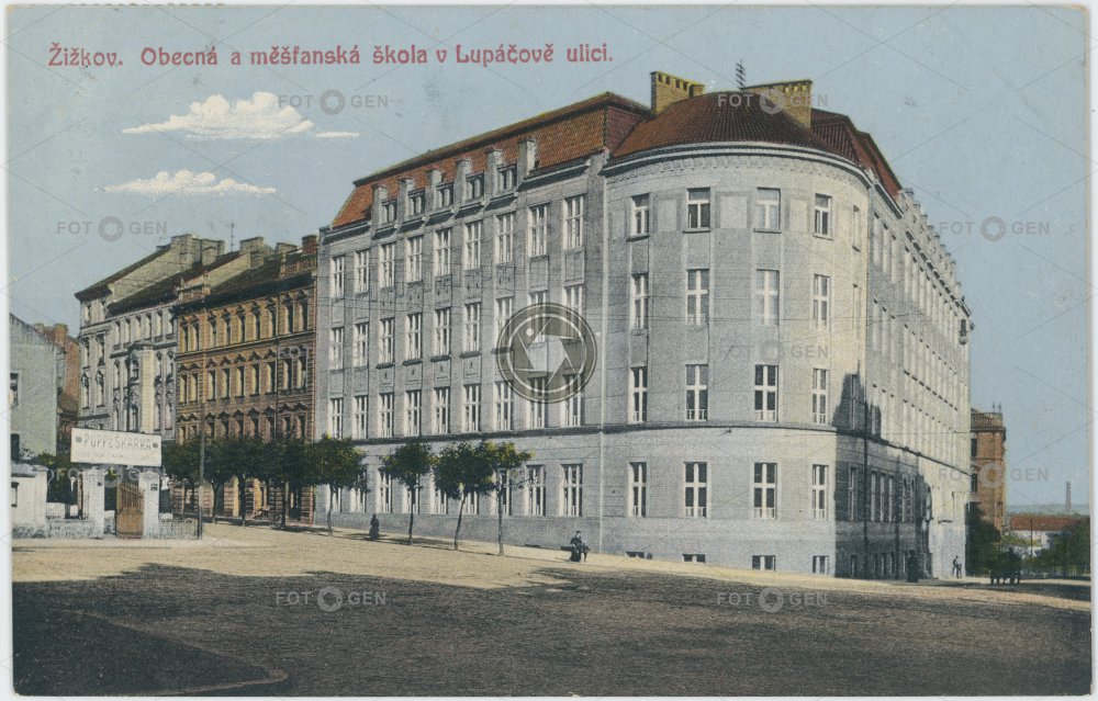1913 barevná colored Lupáčová měšťanská škola místopis obecná škola Prague Praha primary school school škola Táboritská topography town school Žižkov
