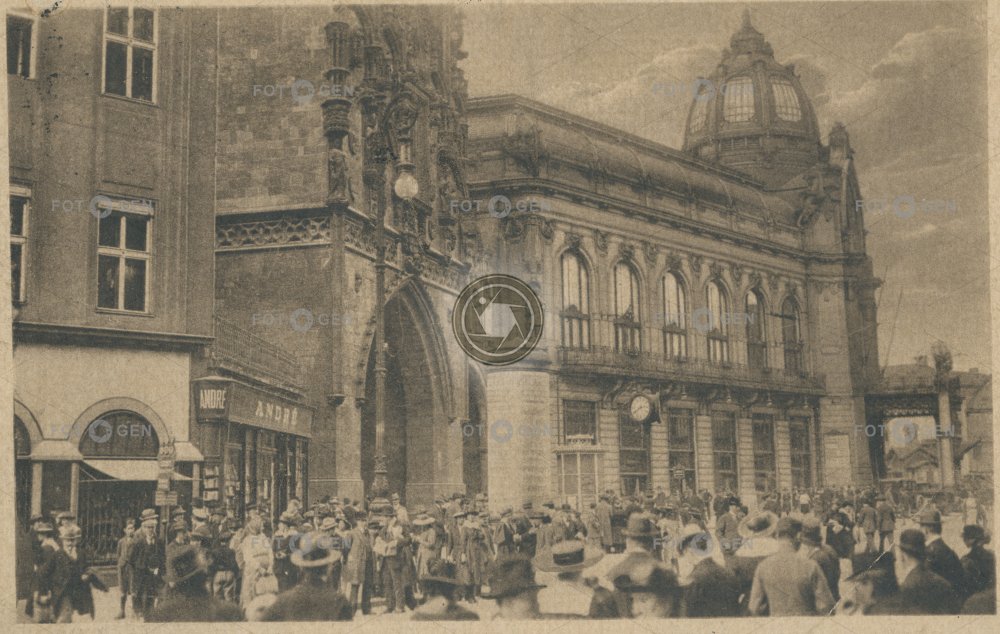 alive Art Nouveau brána gate místopis municipal building náměstí Republiky Obecní dům Old Town pouliční hodiny Powder Tower Prague Praha Prašná brána Reprezentační dům Republiky secesní Stará Město street clock topography živá