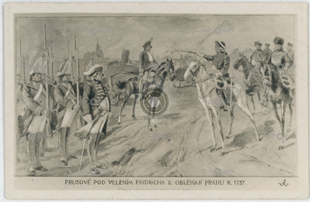 1757 armáda army boj drawing event fight Fridrich II horse king Königlich Preußische Armee král kresba kůň malba místopis painting Prague Praha Pruské vojsko prusové Rechsiegel Soldat soldier topography událost uniform uniforma válka vojáci voják vojna vojsko war
