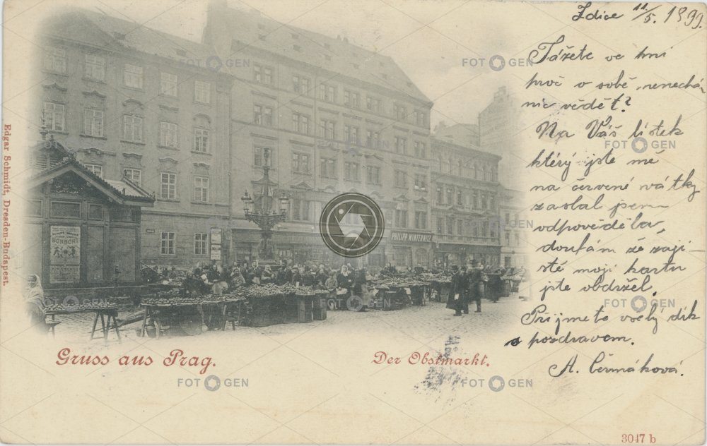 1899 alive Arbesovo náměstí Edgar Schmidt fruit market kandelábr lamppost Market colonnade market place místopis Ovocný trh Prague Praha Public toilets topography tržiště tržnice veřejné toalety wc živá