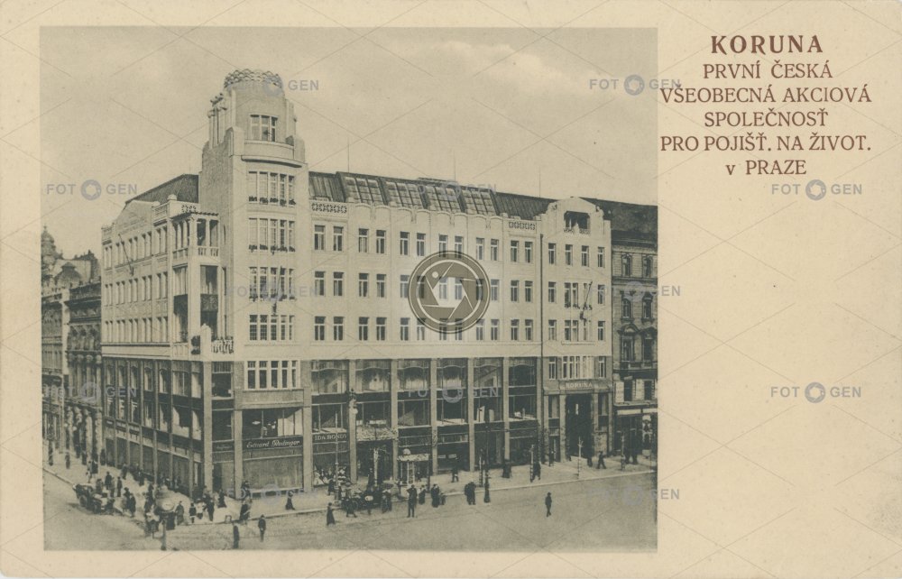 1915 Golden Cross insurance company koruna místopis New Town Nové Město palác Koruna pojišťovna Prague Praha topography Václavák Václavské náměstí Wenceslas Square Zlatý kříž
