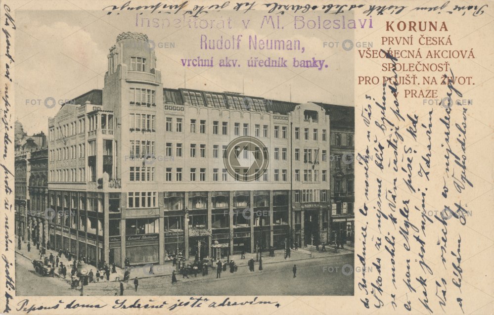 cafe Golden Cross kavárna koruna kříž místopis Na Příkopě náměstí New Town Nové Město palác Pfeiffer pojišťovna pouliční Prague Praha ruch square topography Václavák Václavské Wenceslas Wenceslas Square Zlatý Zlatý kříž