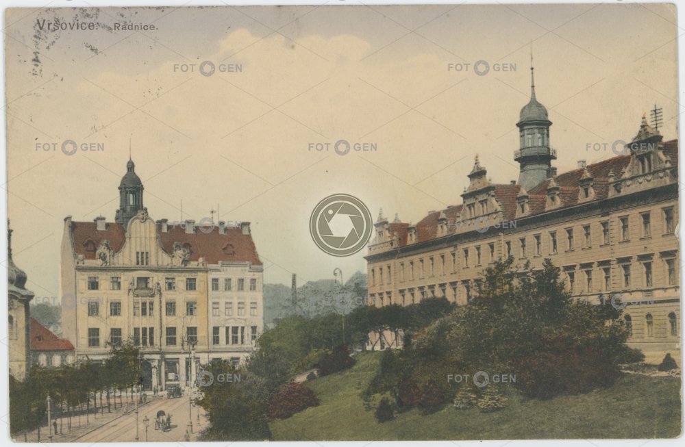 1912 barevná colored kolorovaná mansion místopis Neo-Renaissance novorenesance Prague Praha radnice Rangherka topography town hall Vršovice Vršovický zámeček