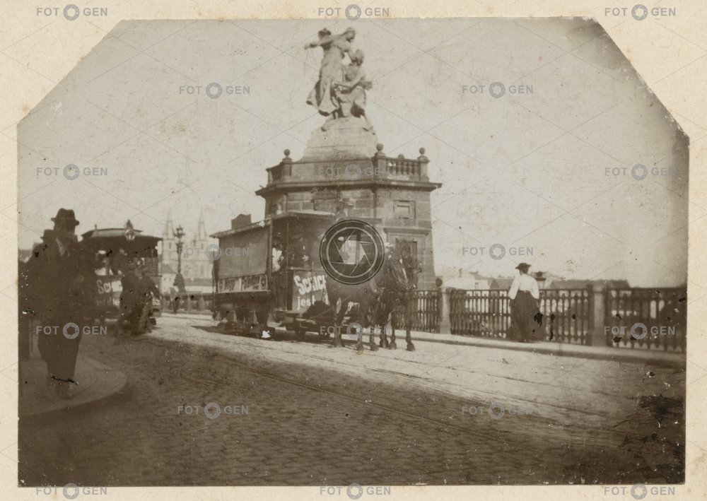 advertising bridge bridges doprava horse koňka místopis most mostné Prague Praha reklama sculpture sousoší topography tram transport