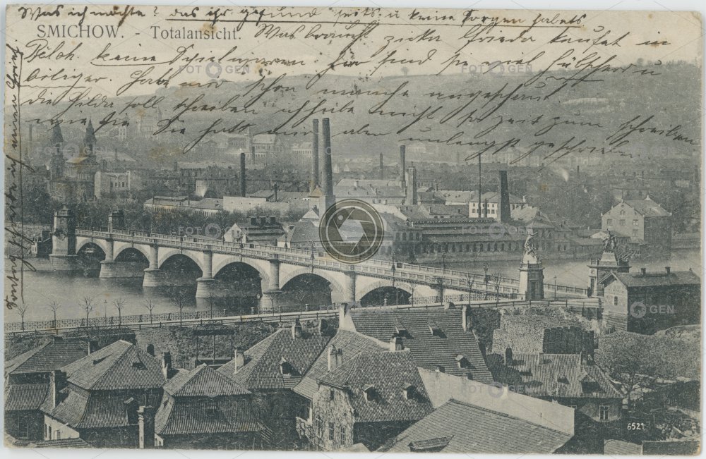 bridge Fabrik fabrika factory chimney komín místopis most neexistující neexistující budova neexistující objekt neexistující stavba non-existent nonexistent building Palackého panorama panoramatická Prag Prague Praha prvorepublikové Smíchov topography továrna
