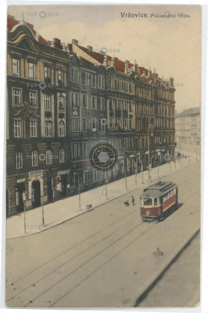 barevná colored kolorovaná místopis Moskevská Palackého Prague Praha topography tram tramvaj Vršovice