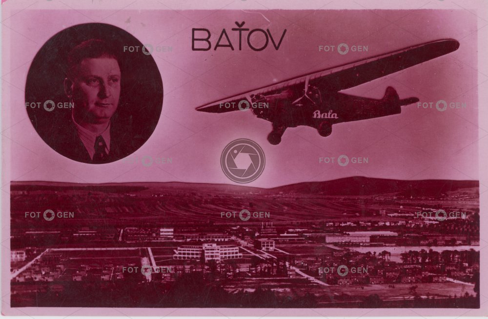 airplane barevná Baťov celkový collage color colored Gottwaldov Jan Antonín Baťa Junkers koláž kolorovaná letadlo místopis Otrokovice panorama topography