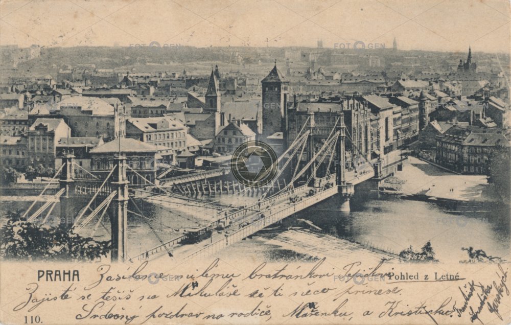 bridge břeh celkový pohled Františka Josefa I. jez Kandertovy lázně místopis most nábřeží neexistující neexistující stavba nonexistent building Nové Město Novomlýnská Novomlýnský panorama panoramatická panoramic Petrská čtvrť Prague Praha řeka topography věž Vltava vodárenská