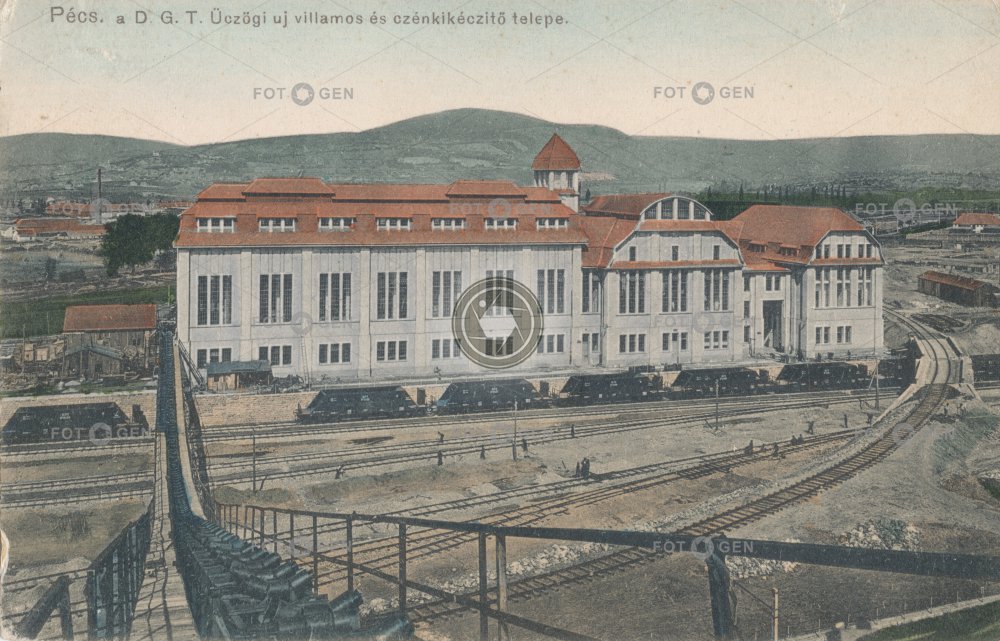 1915 barevná Bergwerk colored diggers doprava důl Fünfkirchen Hungary jáma kolorovaná lanová Maďarsko Magyarország místopis Pécs Peçuy Pečuh Pětikostelí railway station Schacht šachta topography transport Ungarn vlakové nádraží železnice železniční