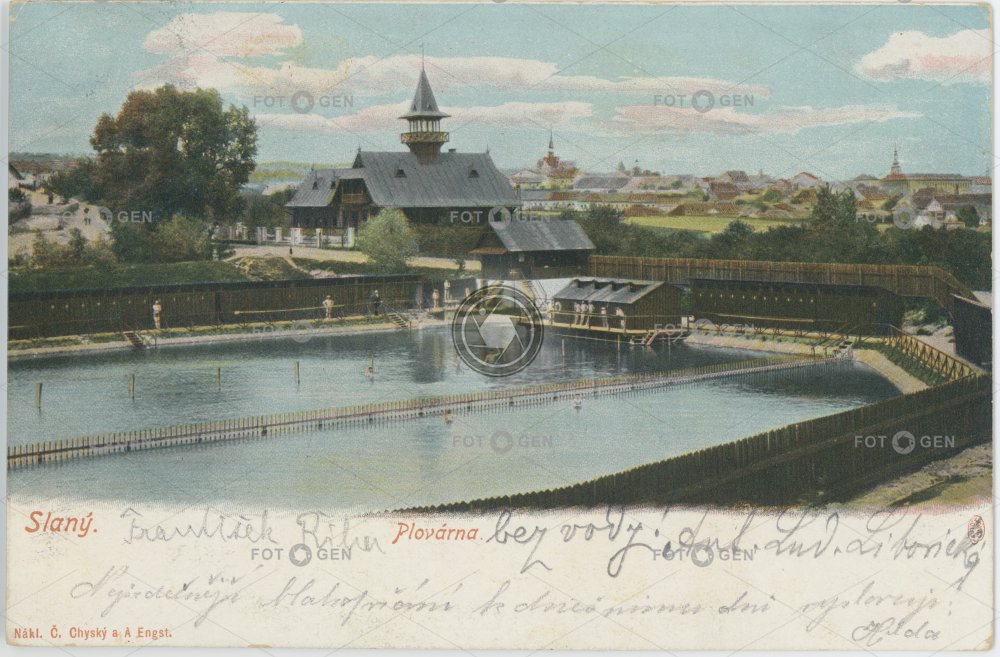 1905 barevná bath bazén bazény colored Engst Chyský kolorovaná koupaliště leisure místopis plovárna pool Slaný swimming topography volný čas