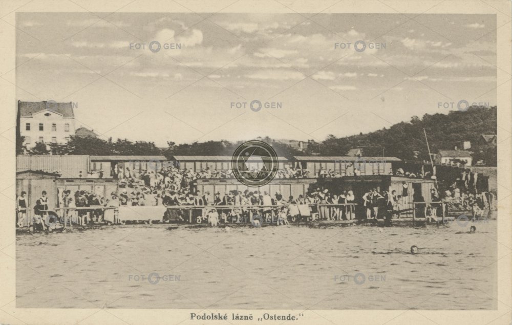 1930 bathing koupaliště koupání lázně místopis Ostende plovárna Podolí Prague Praha river řeka spa swimming bath swimming pool topography Vltava Žluté lázně