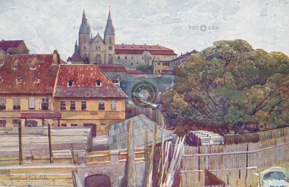 art barevná colored Emauzský Emauzy Emmaus Jaroslav klášter kresba malba místopis monastery old painting Podskalí Prague Praha Šetelík topography umění
