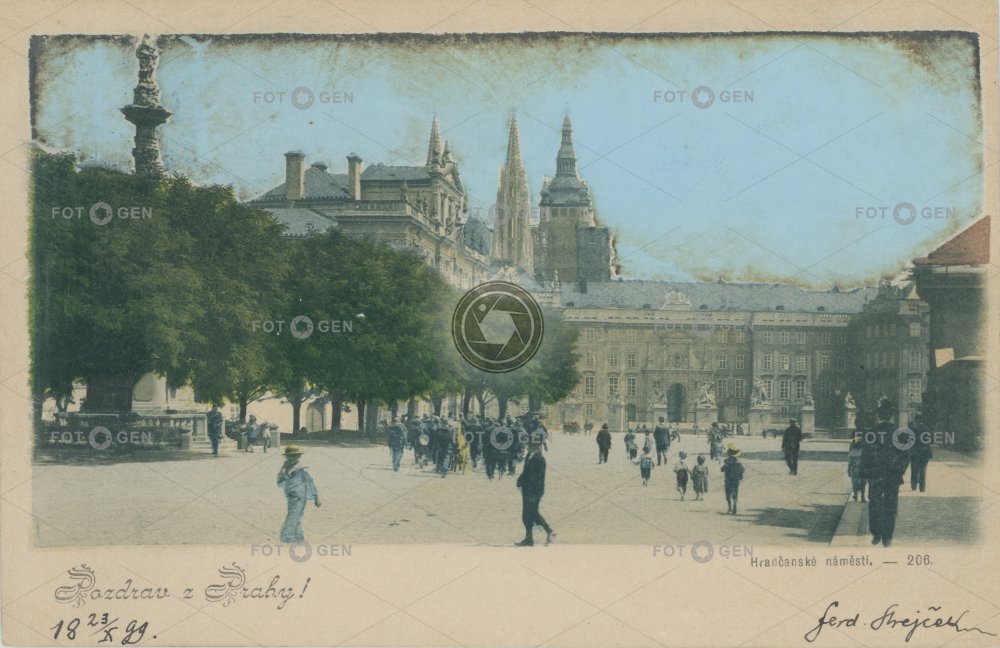 1899 alive barevná Castle Guard colored Hradčanské hradní stráž kolorovaná kolorovaný světlotisk místopis morový sloup pestilential column pluk Prague Prague Castle Praha Pražský hrad topography živá