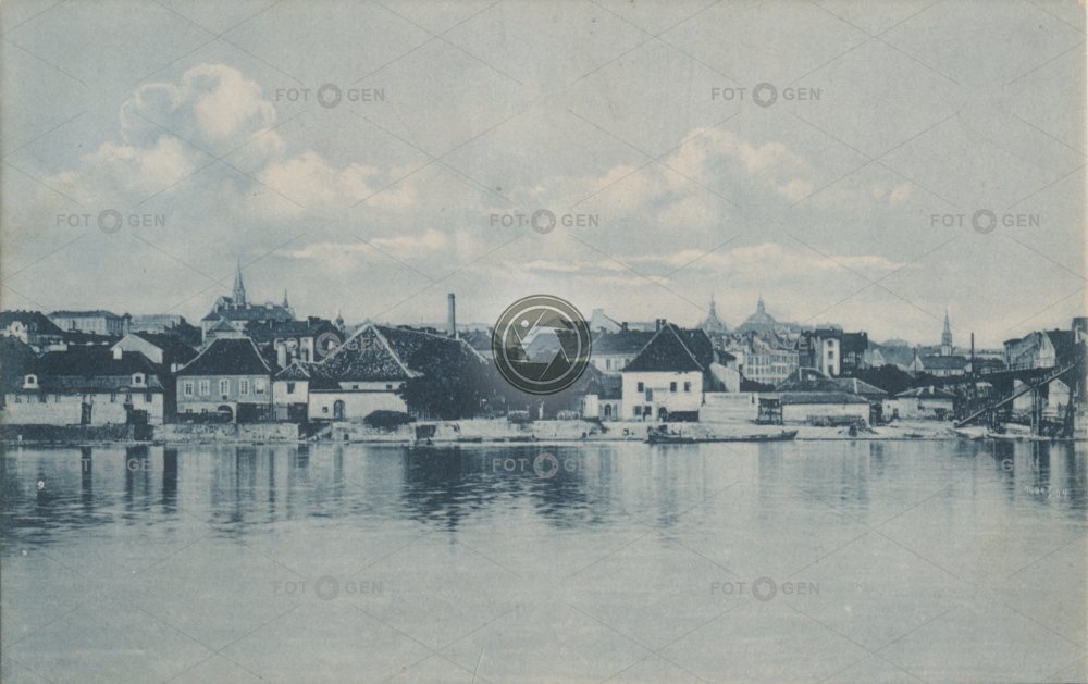 břeh colored embankment kolorovaná místopis nábřeží neexistující neexistující budova neexistující objekt neexistující stavba neregulovaný non-existent non-existent building nonexistent building old Podskalí Prague Praha river řeka topography Vltava