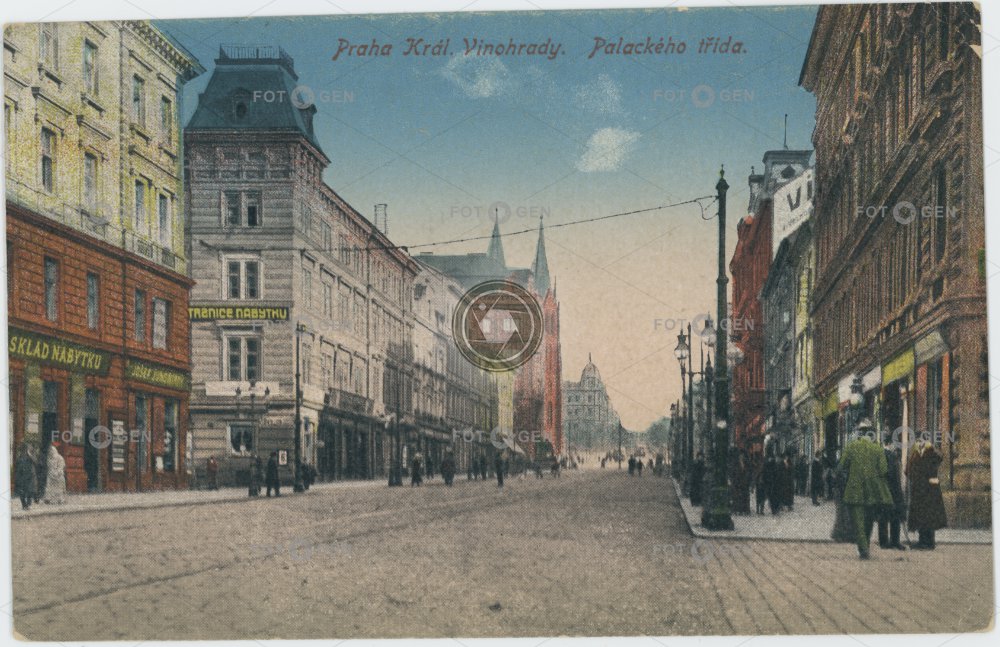 Anglická barevná colored kolorovaná Královské Vinohrady místopis Palackého Prague Praha Royal Vineyard Royal Vineyards topography Vinohrady