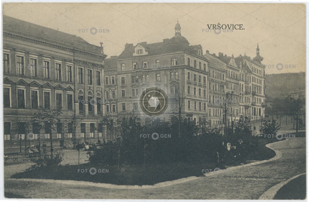 Pohled z Heroldových sadů na ulici Estonská 1925