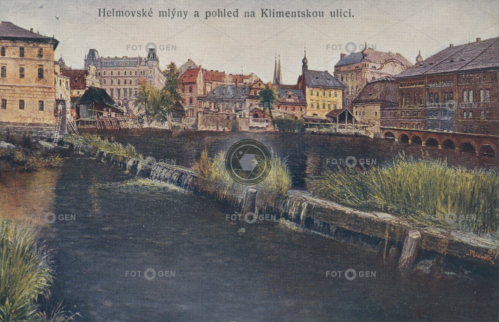 art barevná colored drawing Freundův Helmovské J. Minařík Klimentská kresba Kubešův laguna malba mill místopis mlýn painting Prague Praha Špačkův topography umění