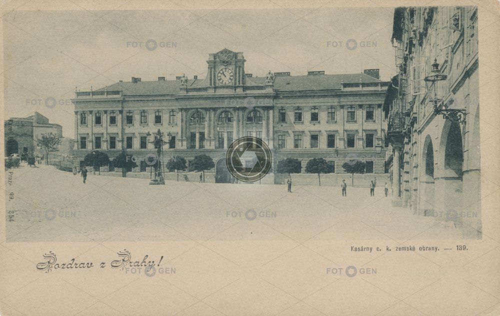 barracks clock hodiny Hradčany kasárna landwehr lighting místopis osvětlení Pohořelec pouliční lampa Prague Praha street lamp topography zeměbrana zemské obrany