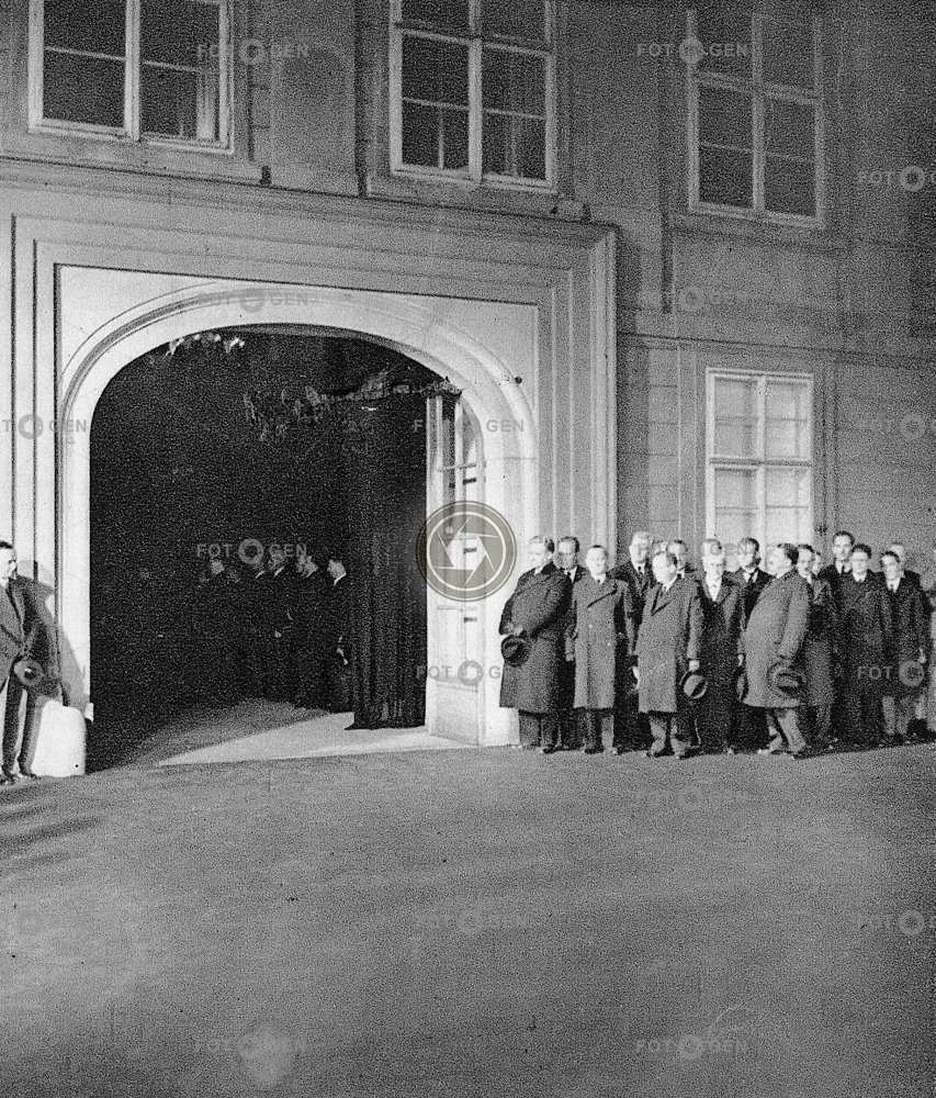 1937 celebrity Československa Československý event hrad nádvoří osobnosti Osvoboditel pohřeb Pražský prezident průvod první smrt smuteční T.G. Masaryk tatíček Tomáš Garrigue Masaryk událost úmrtí