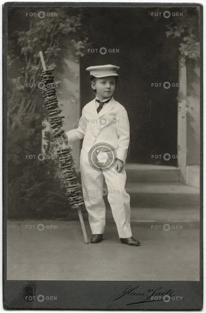 baker bílý oděv cap čepice čistota disciple donáška child labor messenger pekař portrait portrét posel práce práce dětí preclík pretzel pretzel rod předmět purity subject tyč s preclíky učedník white clothing work