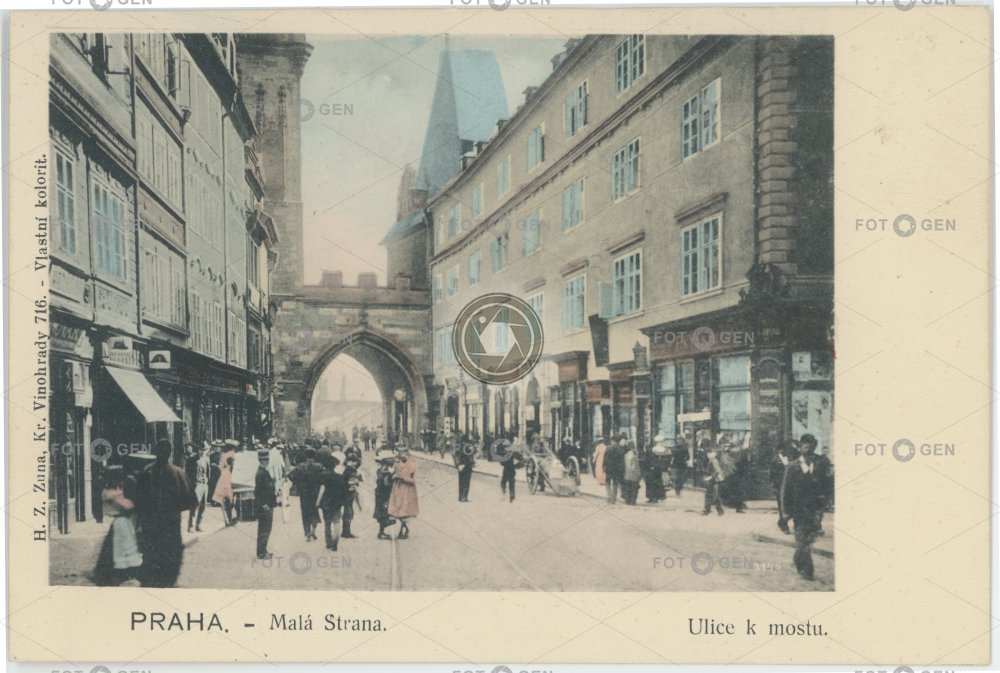 1899 brána colored gate Juditina věž kolorovaná Lesser Town Malá Strana místopis Mostecká Mostecká brána Prague Praha topography tower Ulice k mostu věž