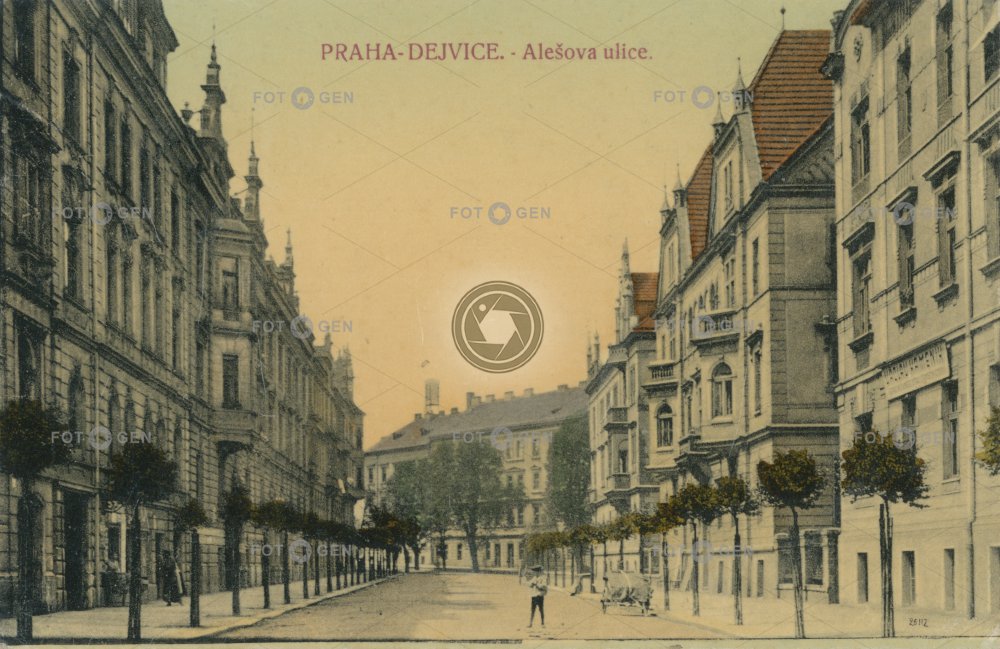 Alešova Alešova ulice Alšova barevná colored Dejvice kolorovaná místopis Prag Prague Praha topography