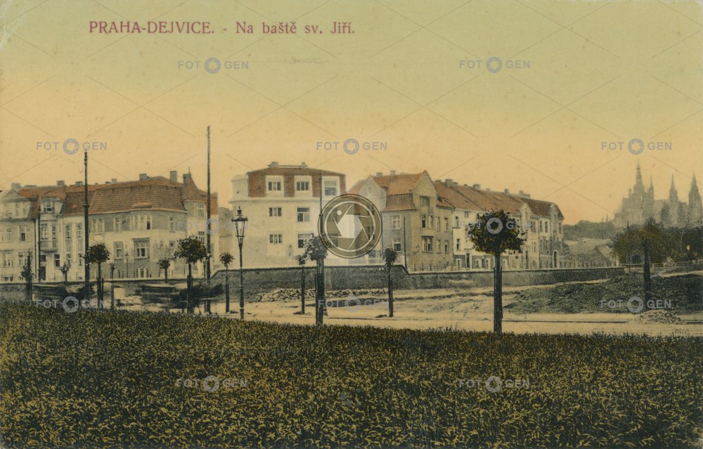 barevná bastion bašta color colored Dejvice kolorovaná místopis Na baště pouliční lampa pouliční osvětlení Prag Prague Praha street lamp sv. Jiří topography