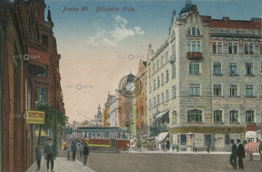 bank banka barevná Bělského colored Česká průmyslová banka Dukelských hrdinů Holešovice místopis Prague Praha Praha 7 topography tram tramvaj