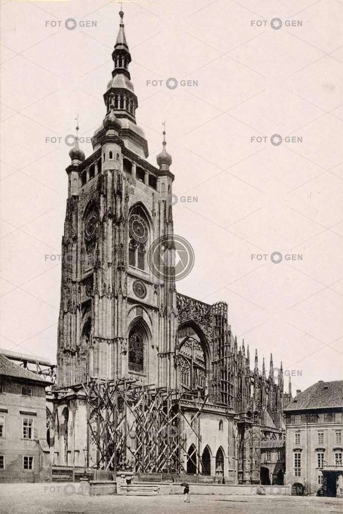 cathedral courtyard dostavba Golden gate katedrála místopis nádvoří oprava Prague Prague Castle Praha Pražský hrad repair topography tower věž Zlatá brána