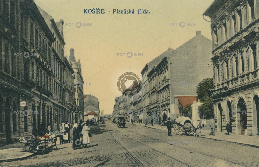 barevná cab carriage color colored drožka fiakr formanský kočár kolorovaná Košíře market místopis Plzeňská povoz Prague Praha topography trh trhovci tržiště tržnice vehicle vůz