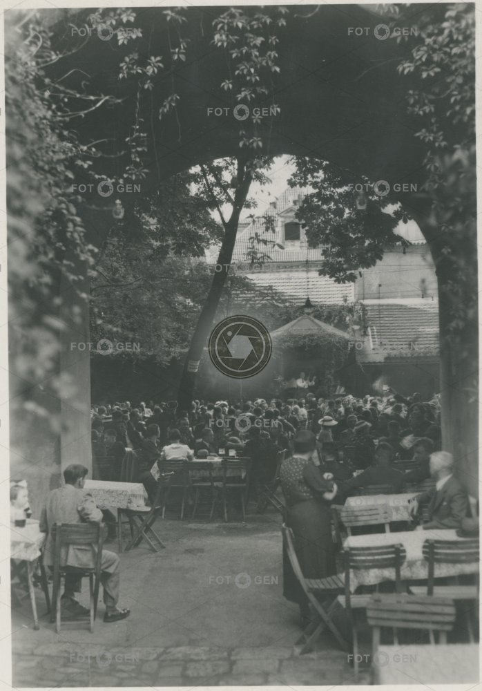 1937 alive brasserie garden Restaurant hospoda host hosté hudebníci chair Letenská letní místopis musician Musiker muzikant muzikanti pivnice Prague Praha pub restaurace restaurant topography U sv. Tomáše venkovní venkovní posezení venkovní zahrádka zahrádka zahradní zákazník židle živá