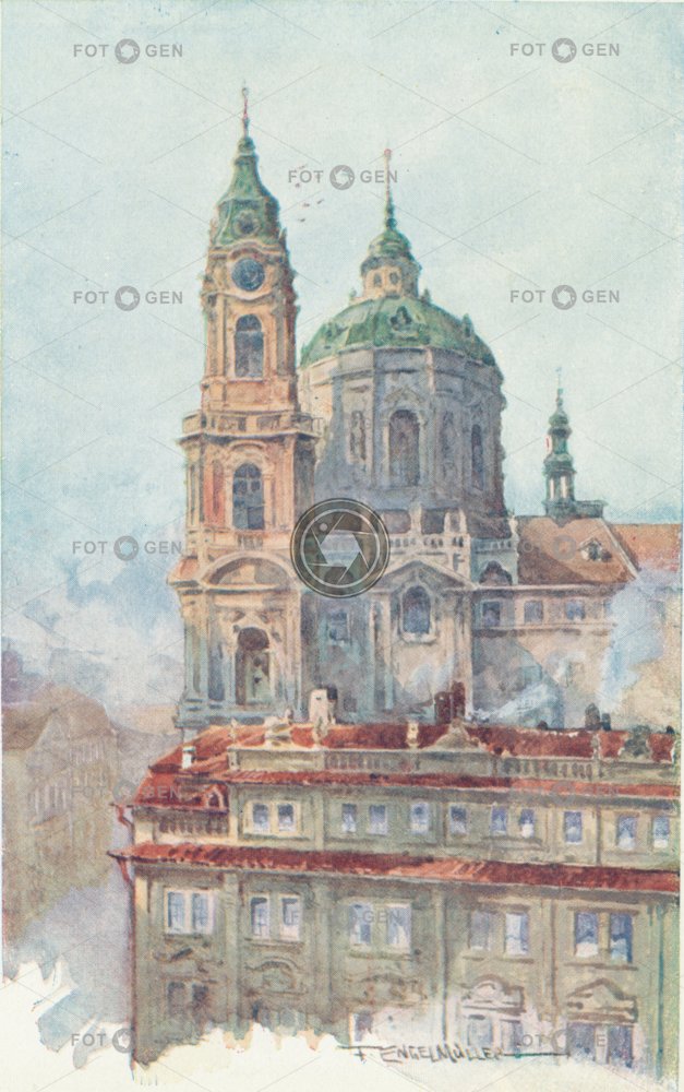 akvarel art barevná baroko castle Steps colored Ferdinand Engelmüller Hradčany chrám kresba Lesser Town Malá Strana malba Malostranské náměstí místopis obraz Old Town Square Picture Prag Prague Praha sv. Mikuláše topography umění Watercolor painting Zámecké schody