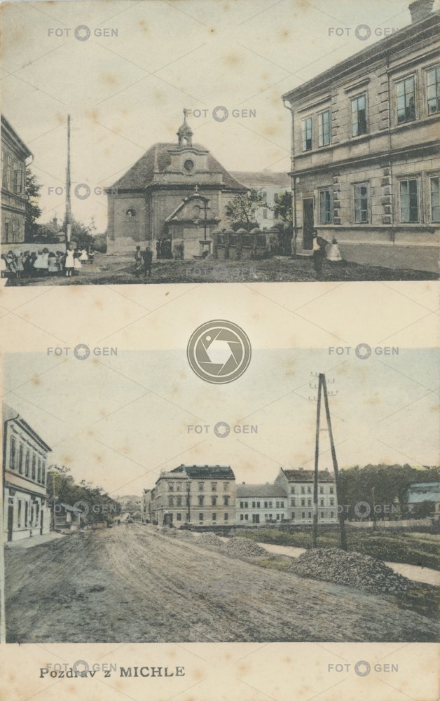 1912 barevná baroko baroque color colored church Kirche kolorovaná kostel Michle místopis Narození Panny Marie Prague Praha school škola topography Virgin Mary