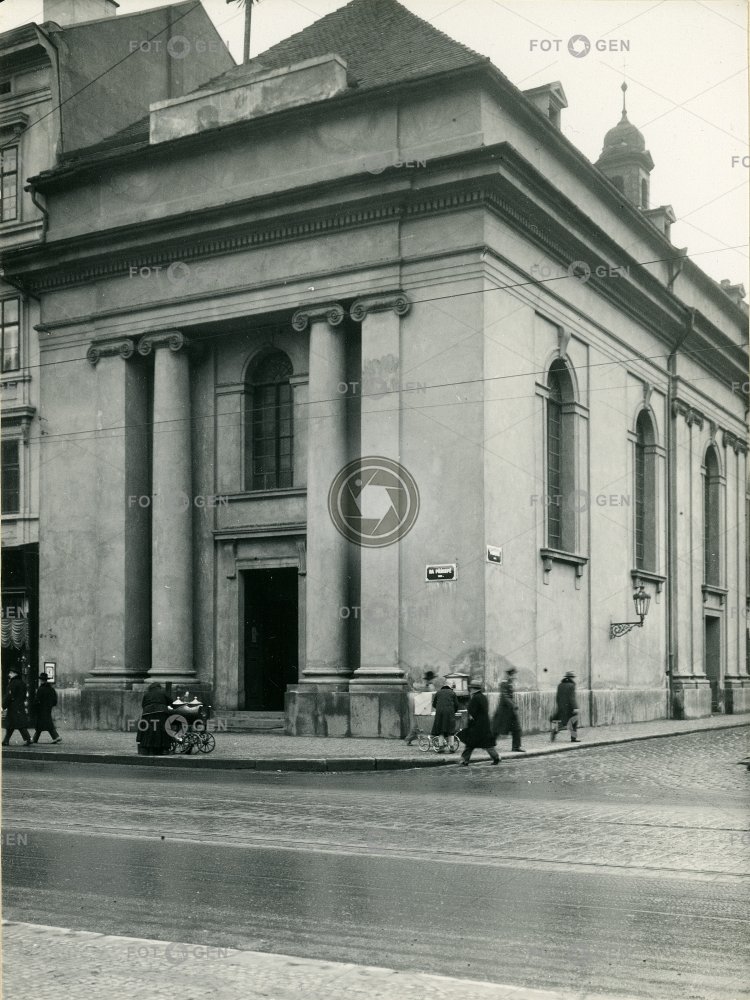Classicism church church of the Holy Cross klasicismus kostel kostel svatého Kříže Na Příkopě Prague Praha street street traffic ulice uliční ruch