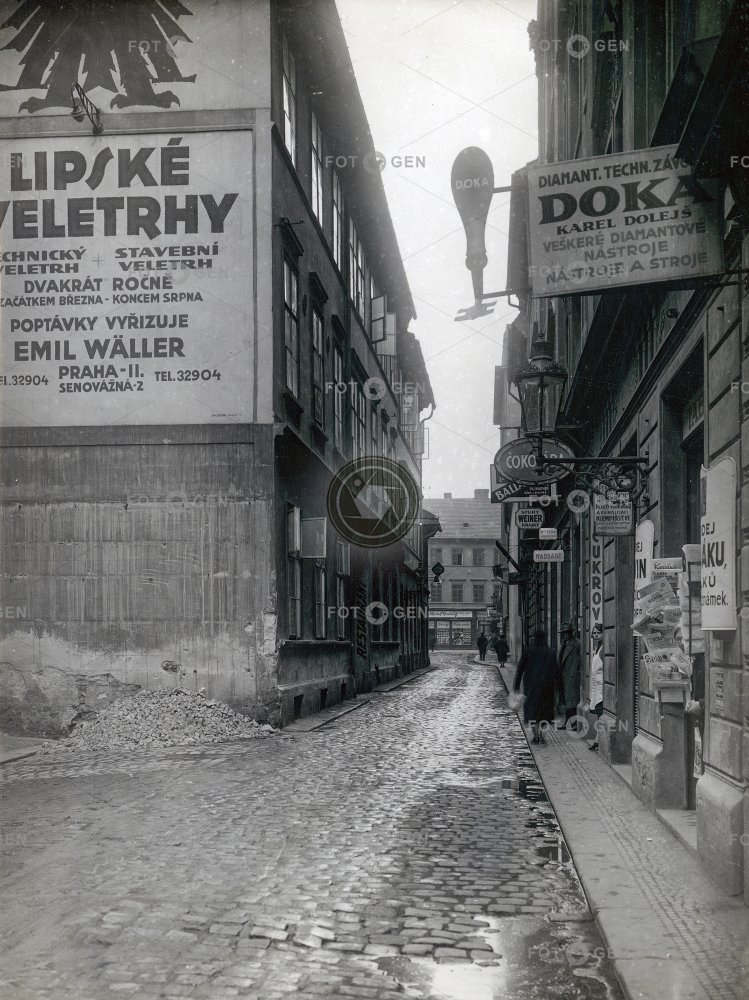 advertising cedule firem company signs Nekázanka New Town Nové Město obchody Prague Praha průhled reklama shops street ulice vista