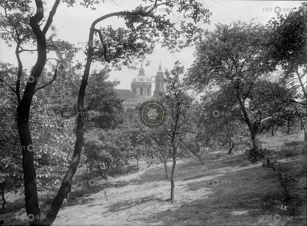 fruit tree Church of St. St. Nicholas Kostel sv. Mikuláše krajina Landscape Lesser Town Malá Strana orchards ovocný strom Petřín Prague Praha sady slope svah