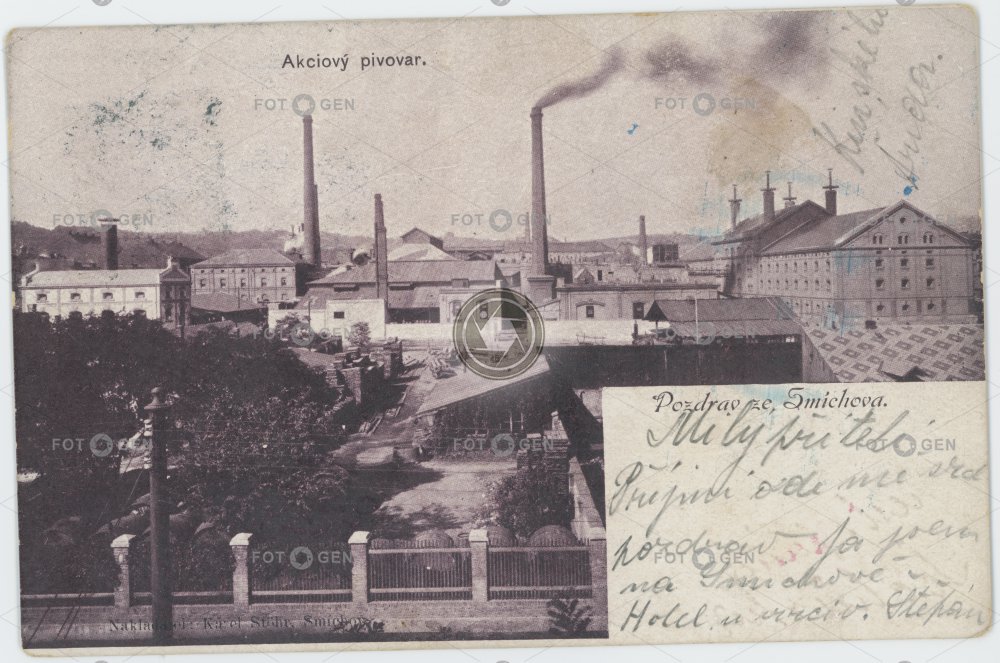 Brauerei brewery browar Fabrik fabrika factory historické history chimney komín místopis pivovar Prag Prague Praha prvorepublikové Smíchov sörfőzde topography továrna