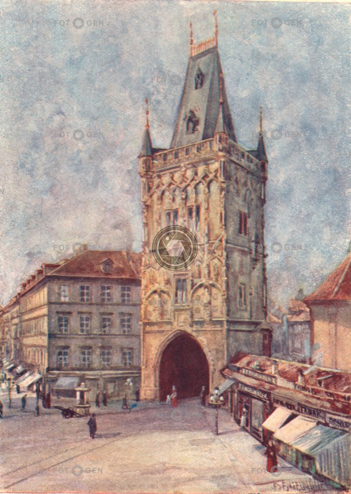akvarel art barevná castle Steps colored Ferdinand Engelmüller Gothic gotika Hradčany kresba Lesser Town Malá Strana malba místopis obraz Old Town Picture Powder gate Prag Prague Praha Prašná brána Pulverturm Staré Město topography umění Watercolor painting Zámecké schody