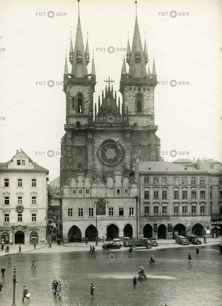auta cars cathedral déšť dlažba dům U zvonu House at the Bell Chrám Matky Boží před Týnem Church of Our Lady before Týn Old Town Old Town Square Prague Praha rain Staré Město Staroměstské náměstí tiles Týn School Týnská škola Týnský chrám