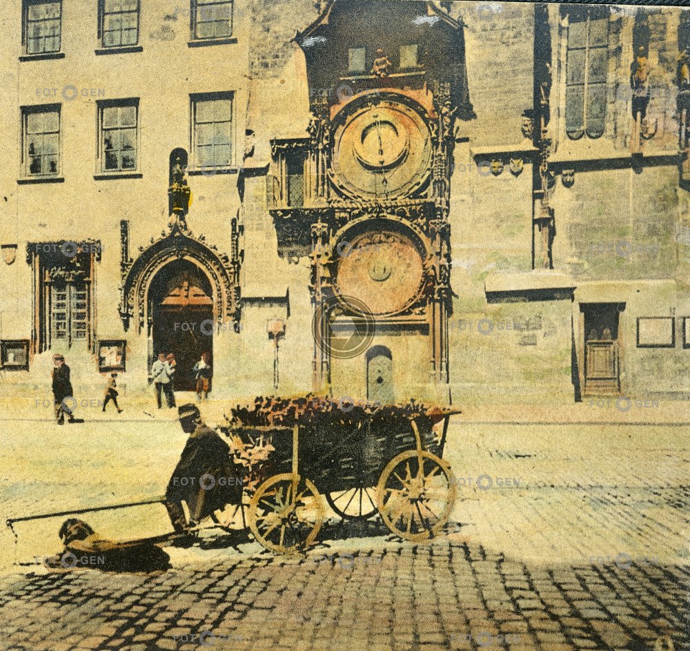 cart dog florist květinář místopis Old Town Astronomical Clock pes práce Prague Praha prodavač seller Staroměstský orloj topography vozík work