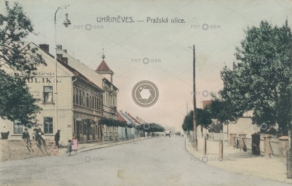 1912 barevná color colored kolorovaná místopis osvětlení pouliční lampa pouliční osvětlení Prague Praha Pražská Přátelství street lamp topography Uhřiněves