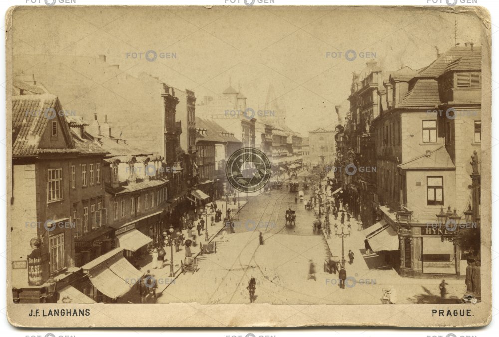 Praha, ulice Na příkopě od Můstku, kolem 1890, kabinetka Autor: J. F. Langhans
