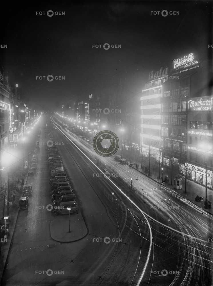 advertising auto car lighting místopis neón New Town square night noc Nové Město náměstí osvětlení parking parkování Prague Praha reklama topography Václavské náměstí Wenceslas Square