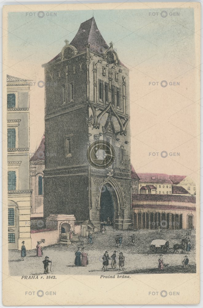 1842 art brána colored gate gothic art gotika kolorovaná malba místopis New Town Nové Město Odraná Prague Praha Prašná brána The Powder Tower topography umění