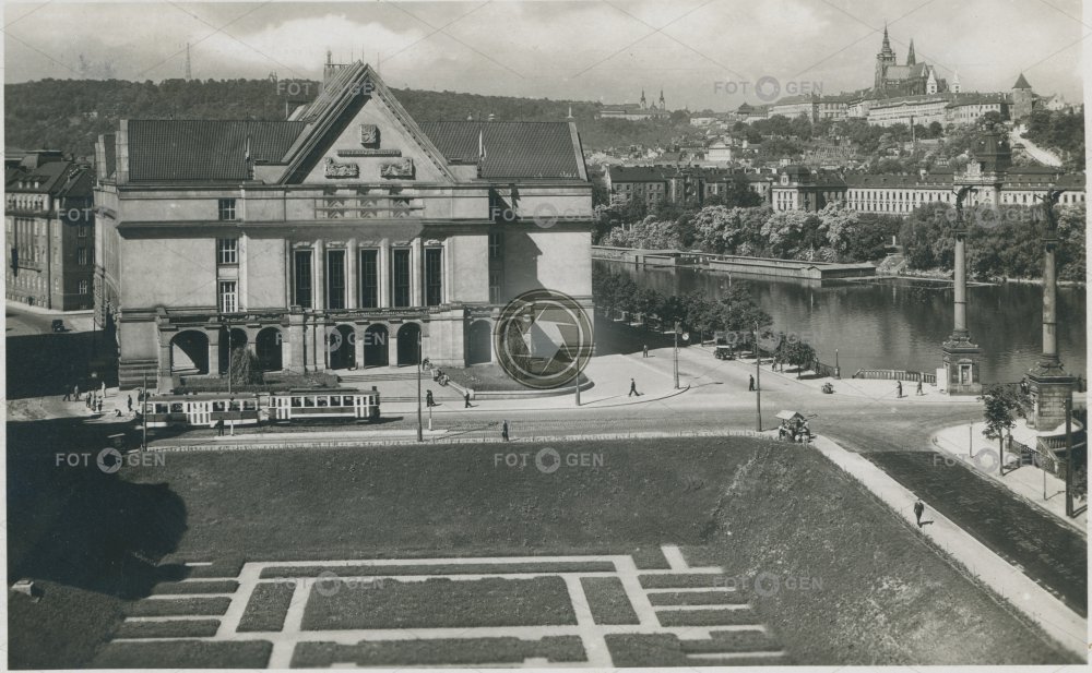 1938 celkový pohled Curieových Čechův Čechův most Dvořákovo Dvořákovo nábřeží Faculty of Law Hradčany Jewish town Josefov Karlovy univerzity Law School místopis most Svatopluka Čecha náměstí Curieových of Charles University panorama plovárna Prague Praha Právnická fakulta river řeka square swimming bath The Jewish Town topography tram tramvaj Univerzity Karlovy Vltava židovské město