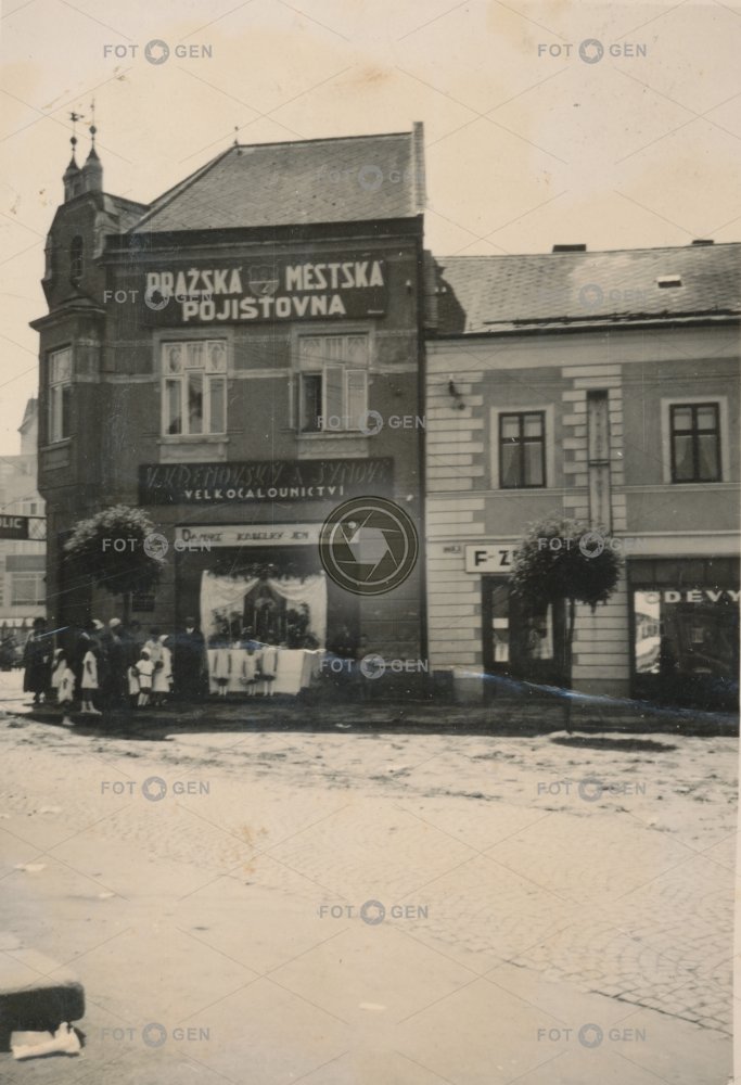 bank Boží tělo event feast insurance company Karel Marek Kostelní místopis náměstí Míru neexistující neexistující objekt non-existent nonexistent building oslava pojišťovna Slavnost Těla a Krve Páně slavnosti topography událost Zlín Zlínský kraj
