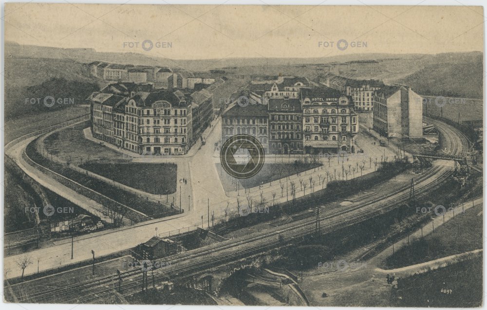 1926 Botič hotel Union místopis Nusle Oldřichova Ostrčilovo potok Prague Praha Praha 4 Přemyslovo railway track stream topography trať union