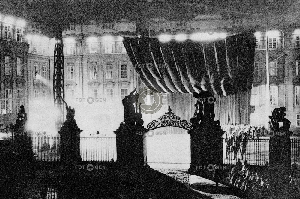 castle celebrity černé Československa Československý event hrad nádvoří noc osobnosti ostatků Osvoboditel pohřeb prapory Pražský prezident první převoz smrt smuteční T.G. Masaryk tatíček Tomáš Garrigue Masaryk událost úmrtí večer vlajky