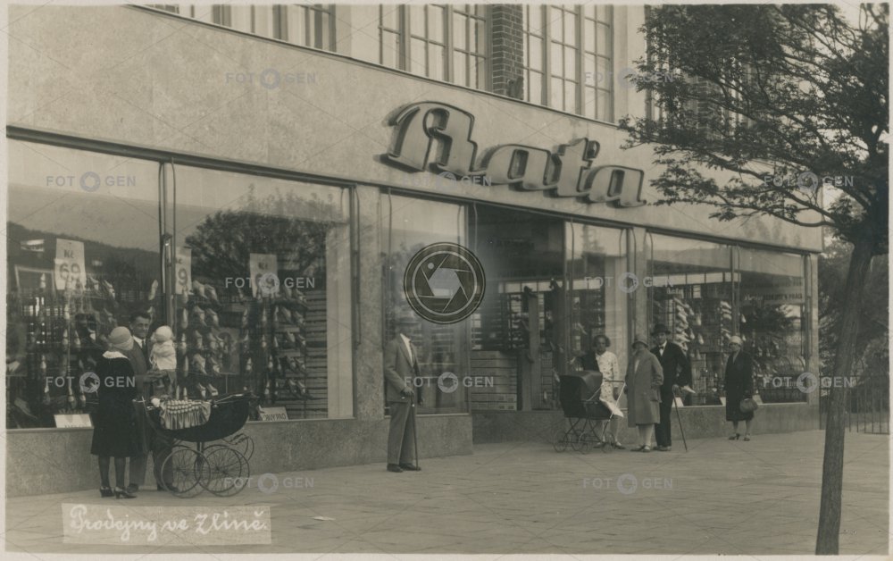 1.budova 1931 alive baby-carriage Baťa Baťa's factory Baťovy Gottwaldov kočárek lidé Menschen místopis obchod people prodejna shop Svit topography Zlín živá