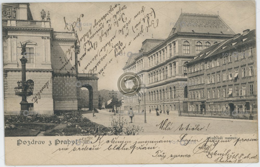 17. listopadu 1901 Dům umělců house of Artists Industrial museum kandelábr lamppost lighting místopis museum muzeum Old Town osvětlení pouliční lampa Prague Praha Průmyslové muzeum Rudolfinum Sanytrová Staré Město street lamp topography ulice Sanytrová
